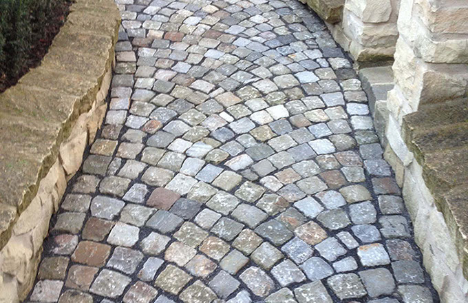 Wir bieten die Planung und Ausführung aller Pflasterarbeiten aus Naturstein oder Beton in verschiedenen Verlegemustern, ob als Einfahrt, Weg, Terrasse oder Treppenanlage.